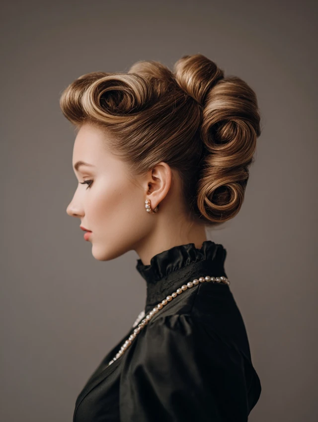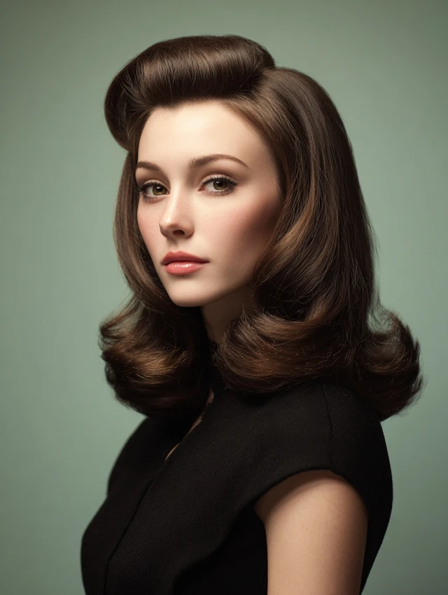 Use teasing comb and hairspray to achieve volume. Medium to long hair works best. Maintenance is moderate; refresh lift daily. Perfect for formal events or statement retro looks.