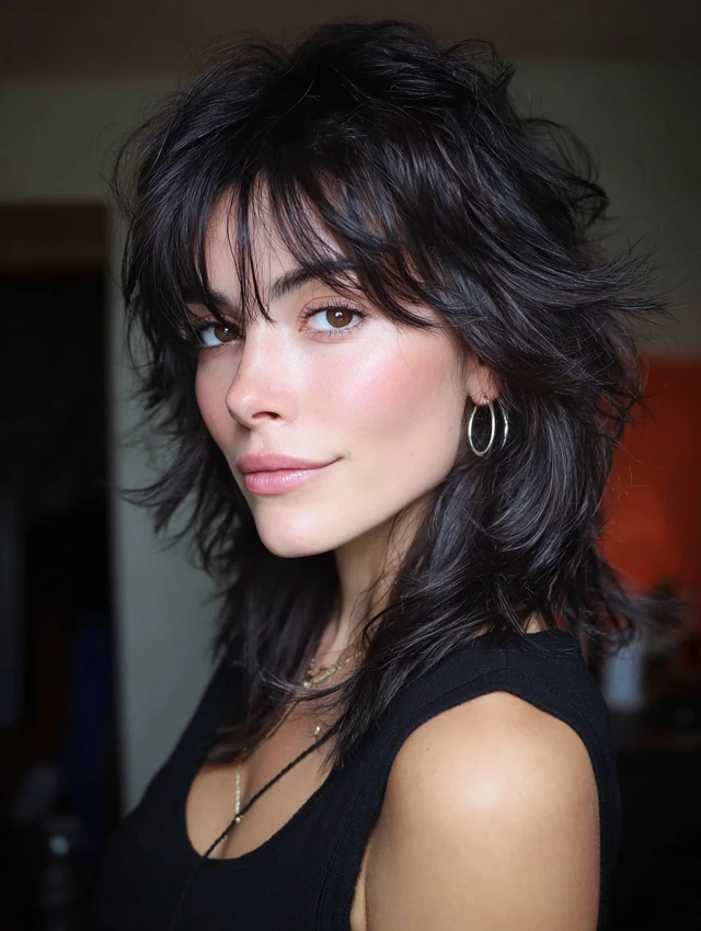The wavy wolf cut blends layered shag structure with natural wave texture. It builds volume at the crown and keeps length flowing through the ends. The waves soften the mullet-inspired shape, making it look effortless instead of dramatic. A wavy wolf cut works especially well for medium to thick hair that needs movement. It frames the face, adds height, and reduces bulk. You can wear it messy or defined. If your waves fall flat, this cut brings them back to life.