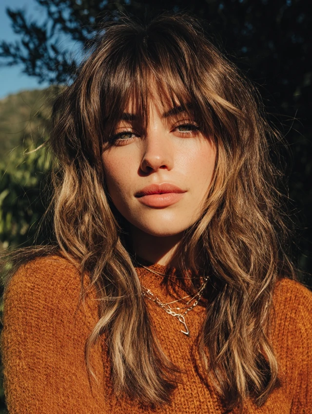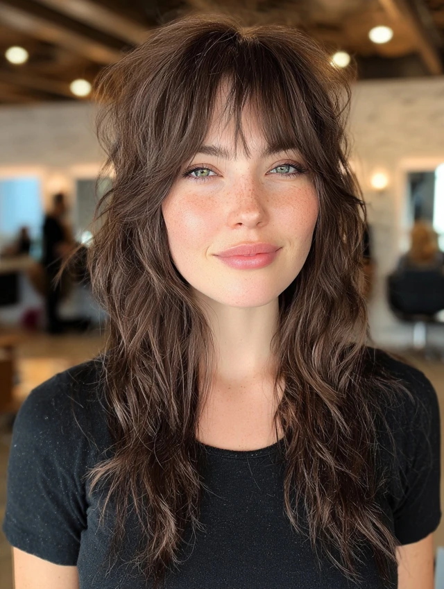 Wavy Wolf Cut with Curtain Bangs