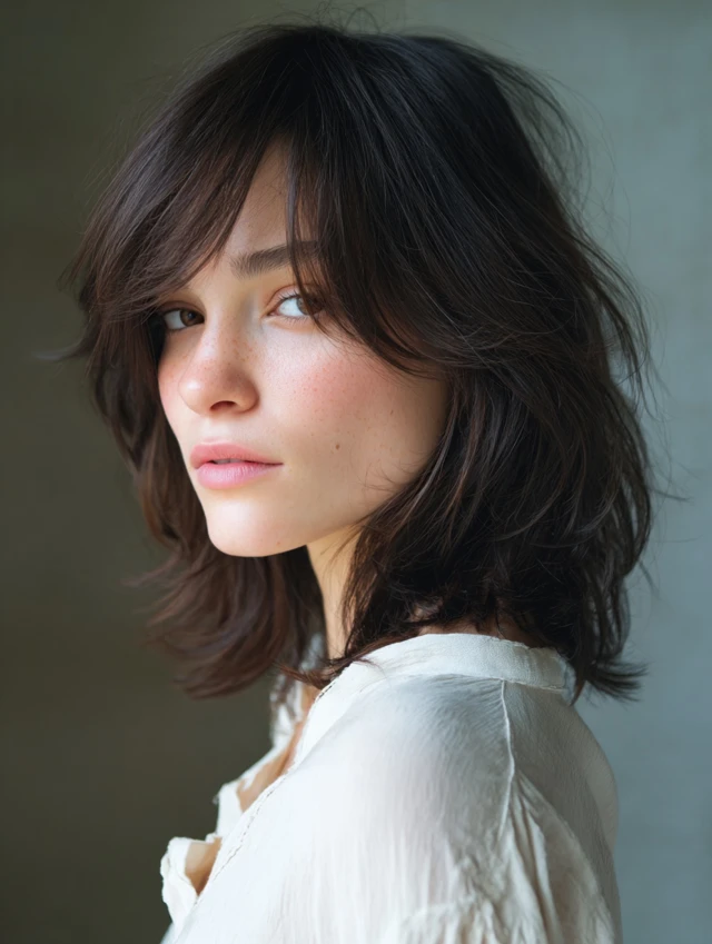 Blow-dry the bangs outward for gentle separation. Let the rest air-dry for relaxed texture. This style feels balanced and works well in both casual and semi-formal settings.