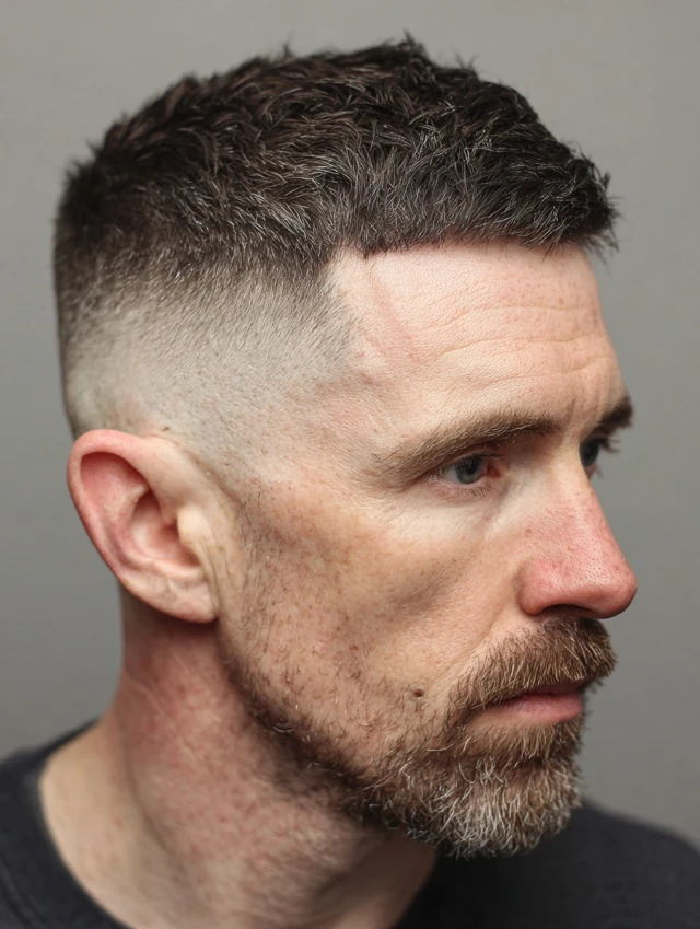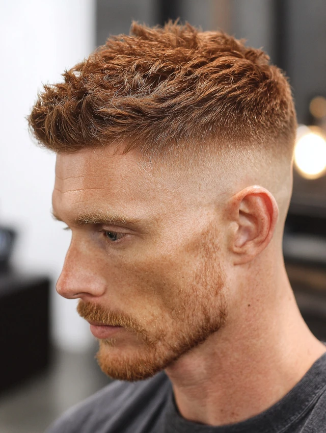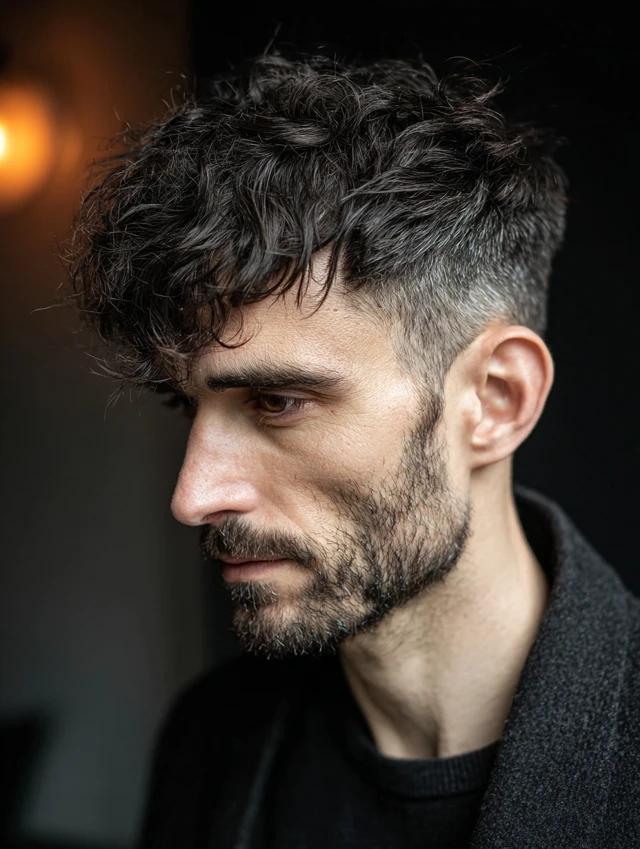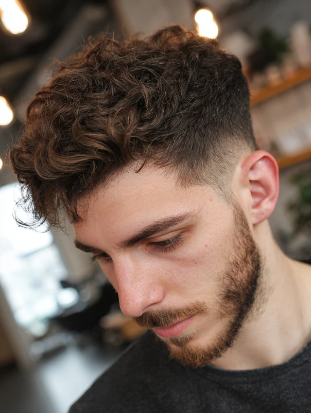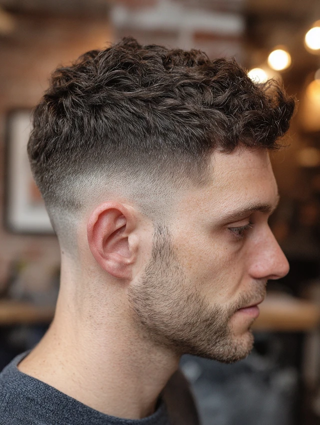 It works well for thick hair. The fade reduces bulk around the temples. Regular barber visits maintain the clean edges. Style the top loosely for a relaxed finish.