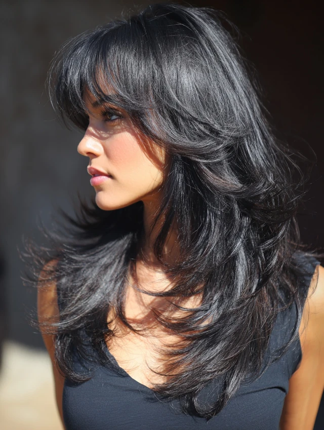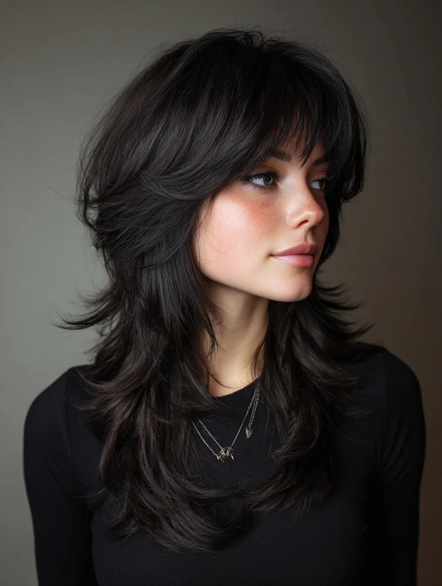 Long Wolf Cut with Side Bangs