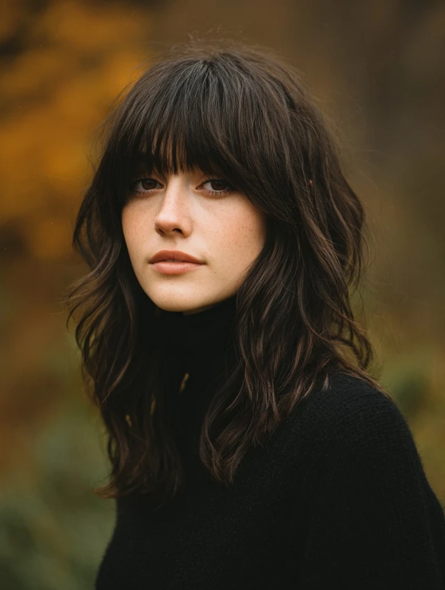 If you want texture with a clear focal point, this cut works well. Would you choose curtain bangs for softness or blunt bangs for bold contrast?