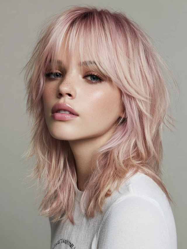 Medium-length hair is ideal. Style the wolf cut with texturizing spray or mousse to enhance choppy layers. Maintenance is moderate; pastel shades may need touch-ups every 4–6 weeks. Perfect for casual, creative, or fashion-forward looks.