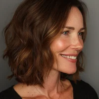 Sections roll inward and pin at the nape, creating a smooth, sculpted finish. The tucked shape feels refined and keeps ends protected. It flatters mature professionals and pairs well with tailored outfits.