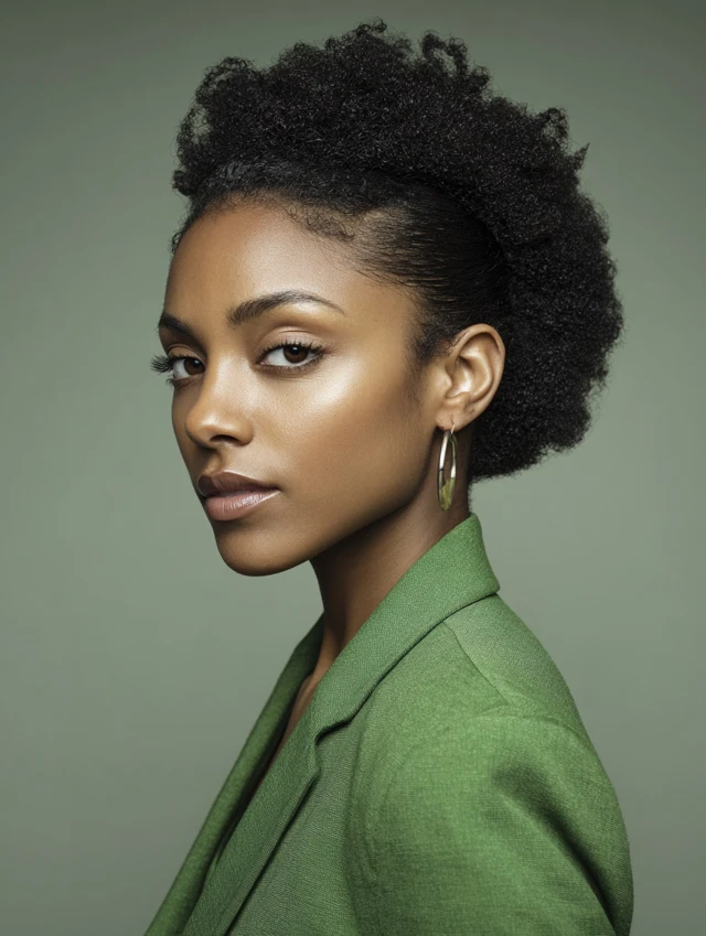 A twist-out offers soft volume with controlled shape. Keep sections uniform and stretch roots slightly for a tidy finish. This look flatters longer faces and softens angular features while still reading professional.